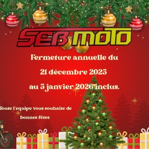 Votre magasin Seb Moto ferme pour les fêtes de fin d’année du 21 décembre 2025 au 5 janvier 2026 inclus.